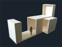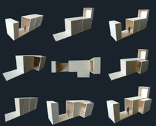 sobo is a flexible event-box, facilitating various spatial constellations. A vertical element, for example, can become a projections screen or can connect with the background. The spatial element upfront contains a seats for an audience and can, with unfolded tent system, create an enlarged event space. Furthermore the extendable front serves as an extra entrance and additional daylighting. | |